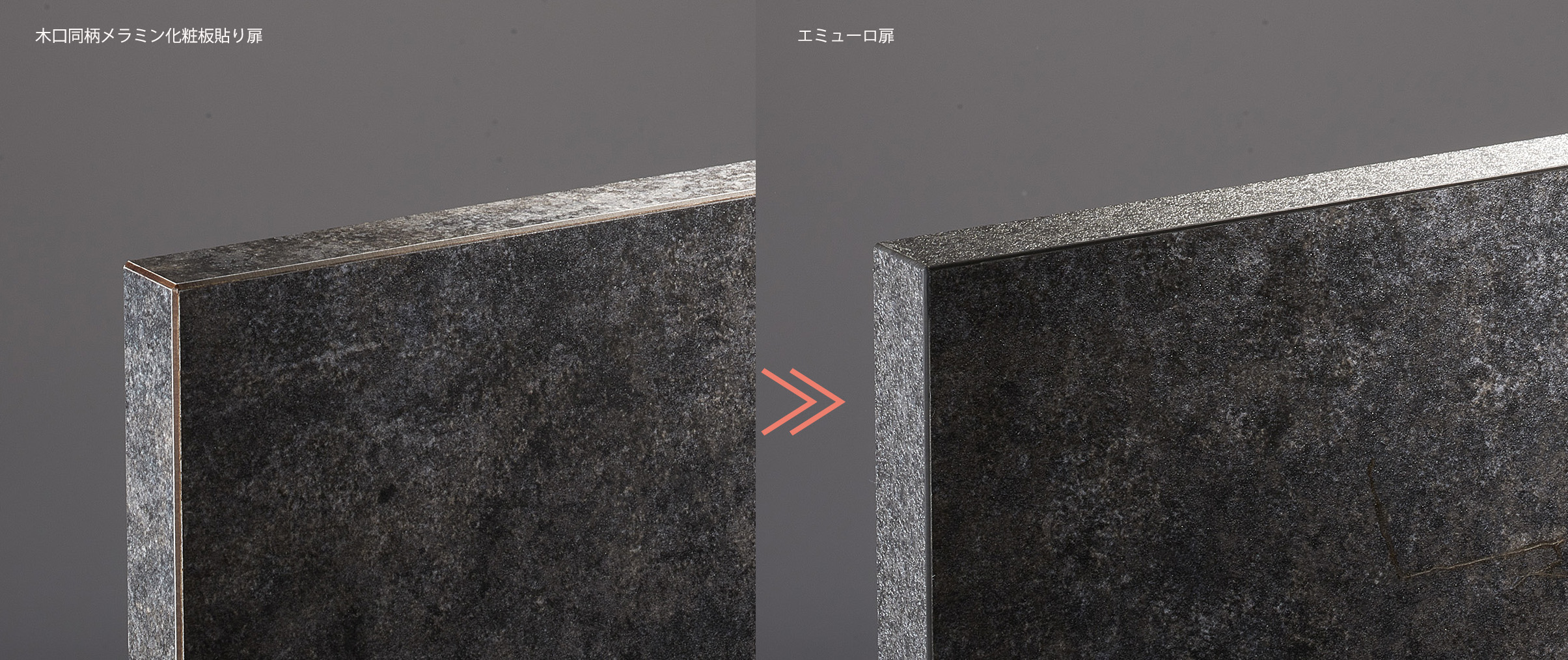 専用のエッジ材で従来のエッジの継ぎ目を目立たなくした美しいディテール。